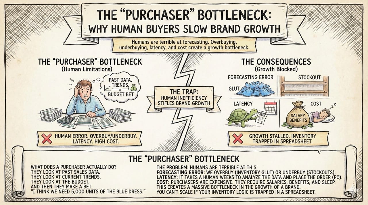 Inspiration: Watching a brand purchaser spend 4 hours in Excel trying to guess how many t-shirts to order for Q3, and realizing that an AI already knows the answer.