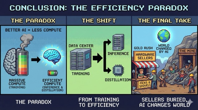 We are moving from “Training” (massive compute) to “Inference” (efficient compute) and “Distillation” (making small models smart).