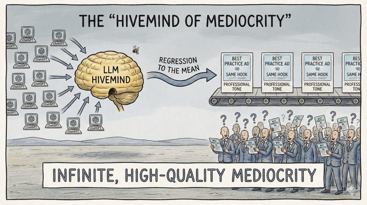 AI gives every small business a "B+" marketing team for free. But when everyone is a B+, no one is an A. The future belongs to the "Risk-Takers" who defy the hivemind.