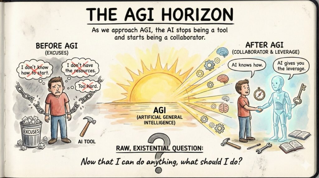 You can’t say “I don’t know how to start” anymore. The AI knows how. You can’t say “I don’t have the resources.” The AI gives you the leverage.