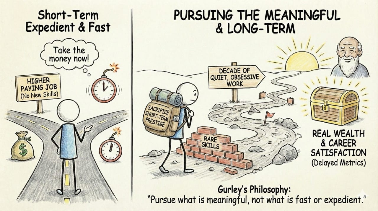 It is very tempting to take a higher paying job that teaches you absolutely nothing new. Gurley aligns perfectly with the philosophy of pursuing what is meaningful rather than what is fast or expedient.