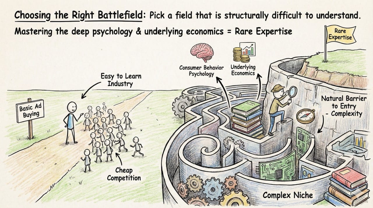 If your industry is easy to learn, you will constantly fight off cheap competition. Complexity acts as a natural barrier to entry that protects your earning potential.