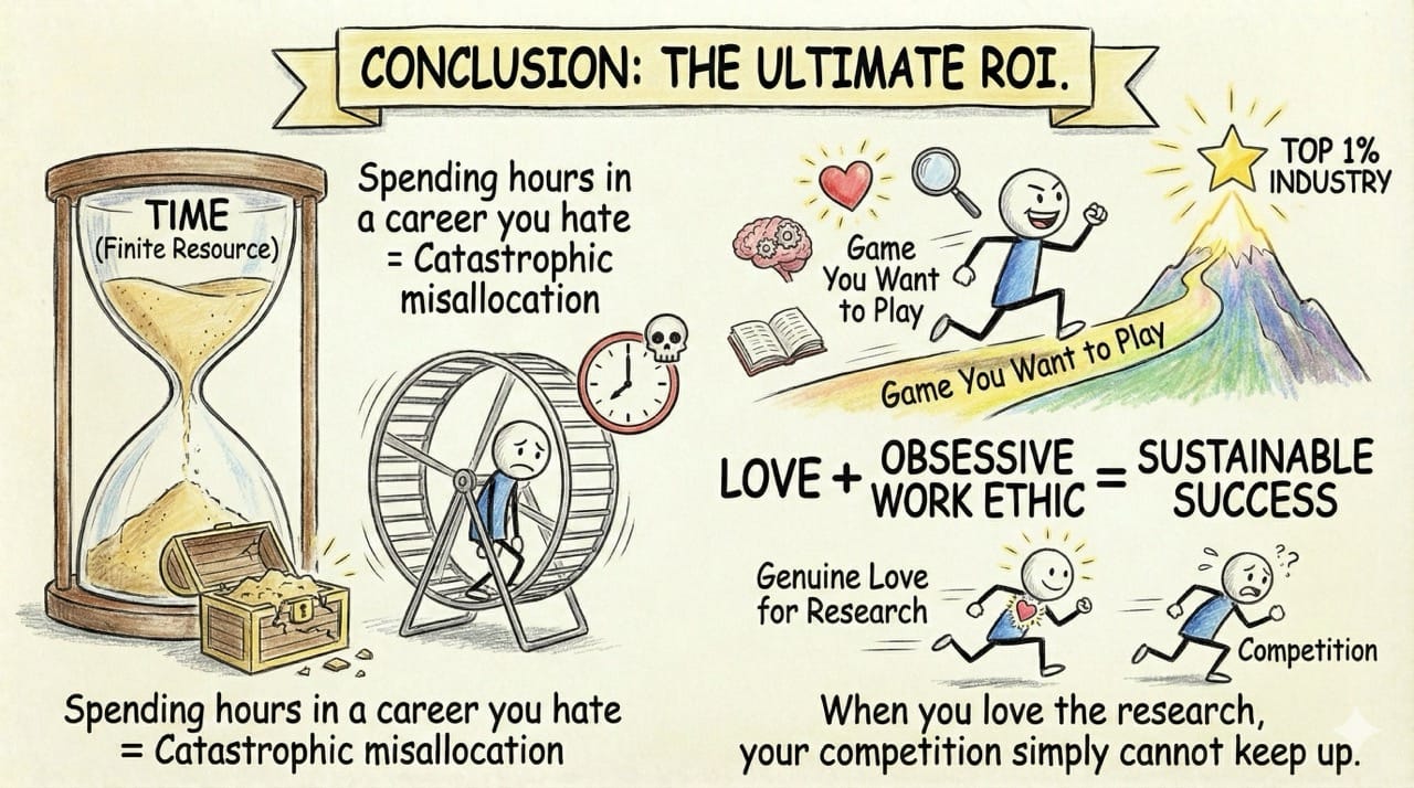 Spending the majority of your waking hours in a career you hate is a catastrophic misallocation of your capital.