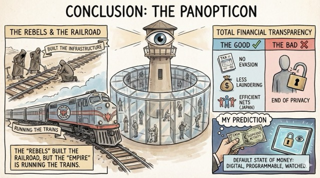 My Prediction: In the future, “Cash” will be viewed as a suspicious activity. The default state of money will be digital, programmable, and watched.