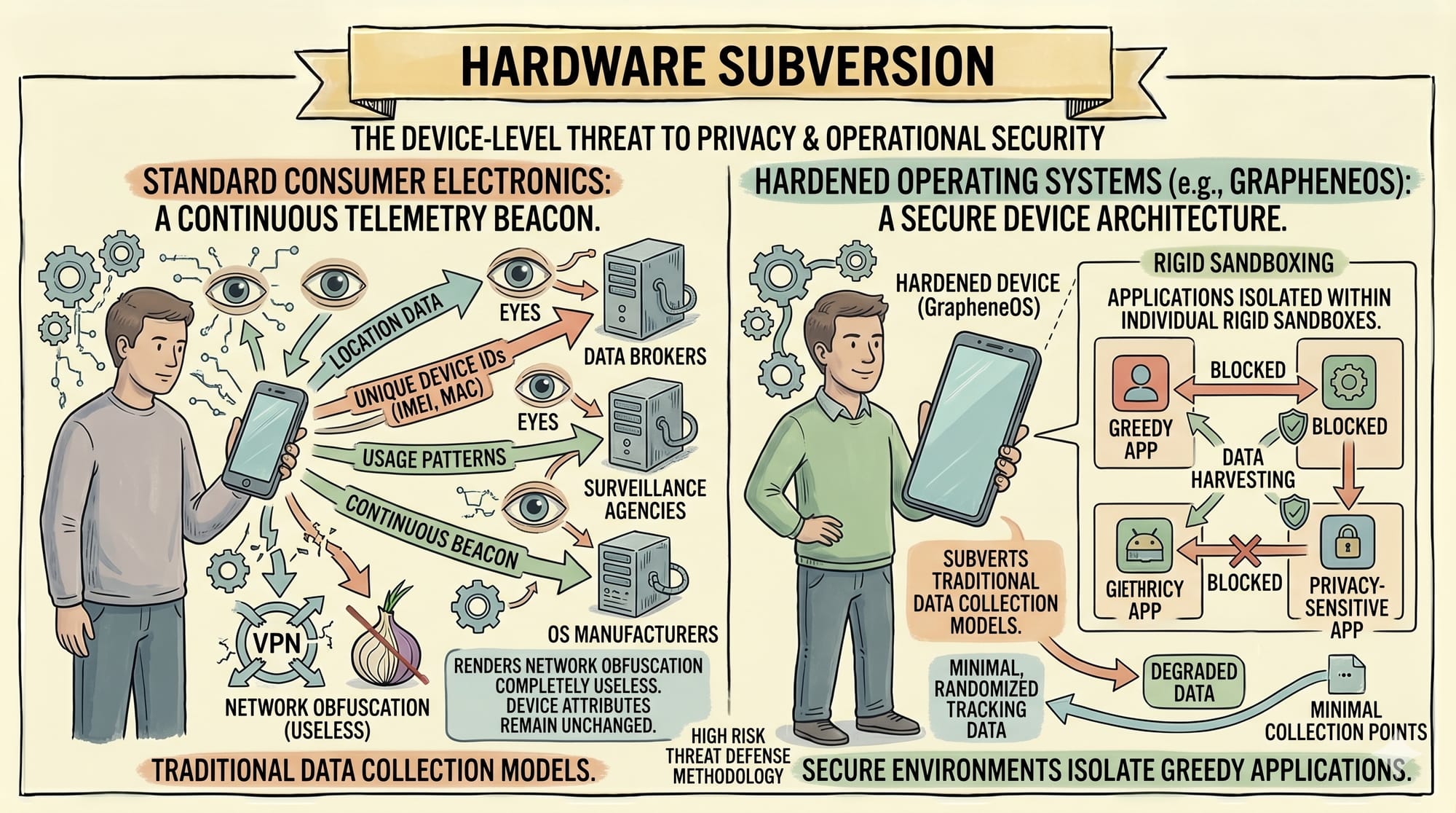 Evading device level tracking requires migrating to hardened operating systems like GrapheneOS that subvert traditional data collection models.