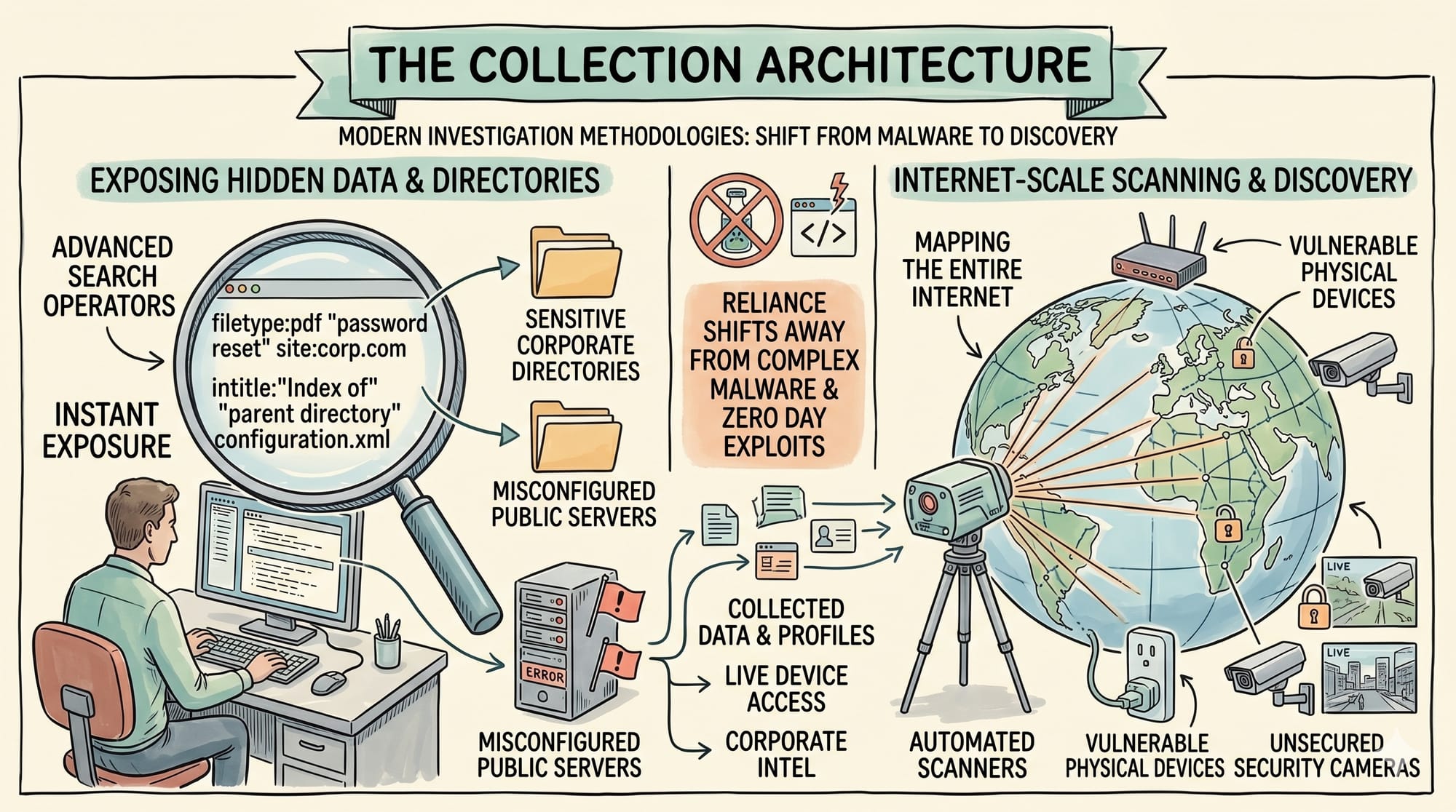 They utilize advanced search operators to instantly expose sensitive corporate directories and misconfigured public servers.