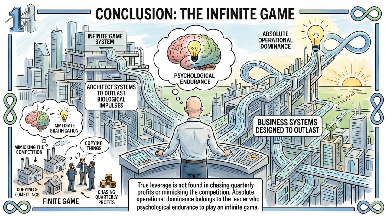 As an effective executive, you must architect your business systems to outlast your own immediate biological impulses. True leverage is not found in chasing quarterly profits or mimicking the competition. Absolute operational dominance belongs to the leader who possesses the psychological endurance to play an infinite game.