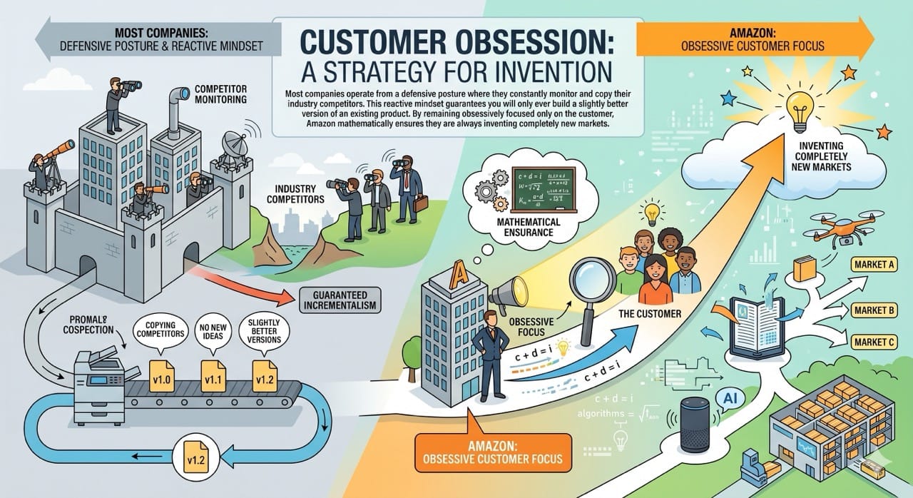 By remaining obsessively focused only on the customer, Amazon mathematically ensures they are always inventing completely new markets.