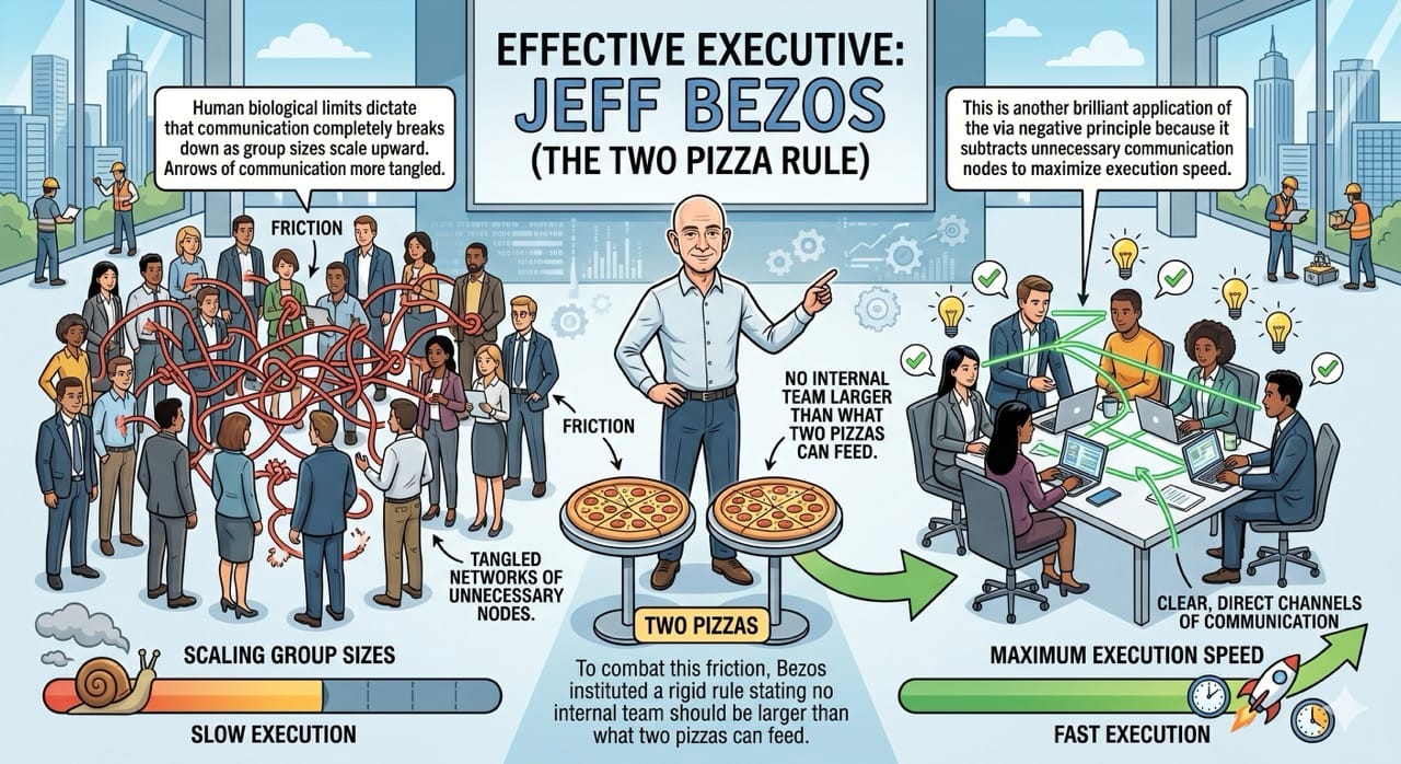 To combat this friction, Bezos instituted a rigid rule stating no internal team should be larger than what two pizzas can feed.