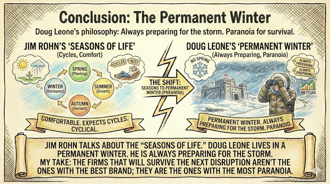 Jim Rohn talks about the "Seasons of Life." Doug Leone lives in a permanent Winter. He is always preparing for the storm.