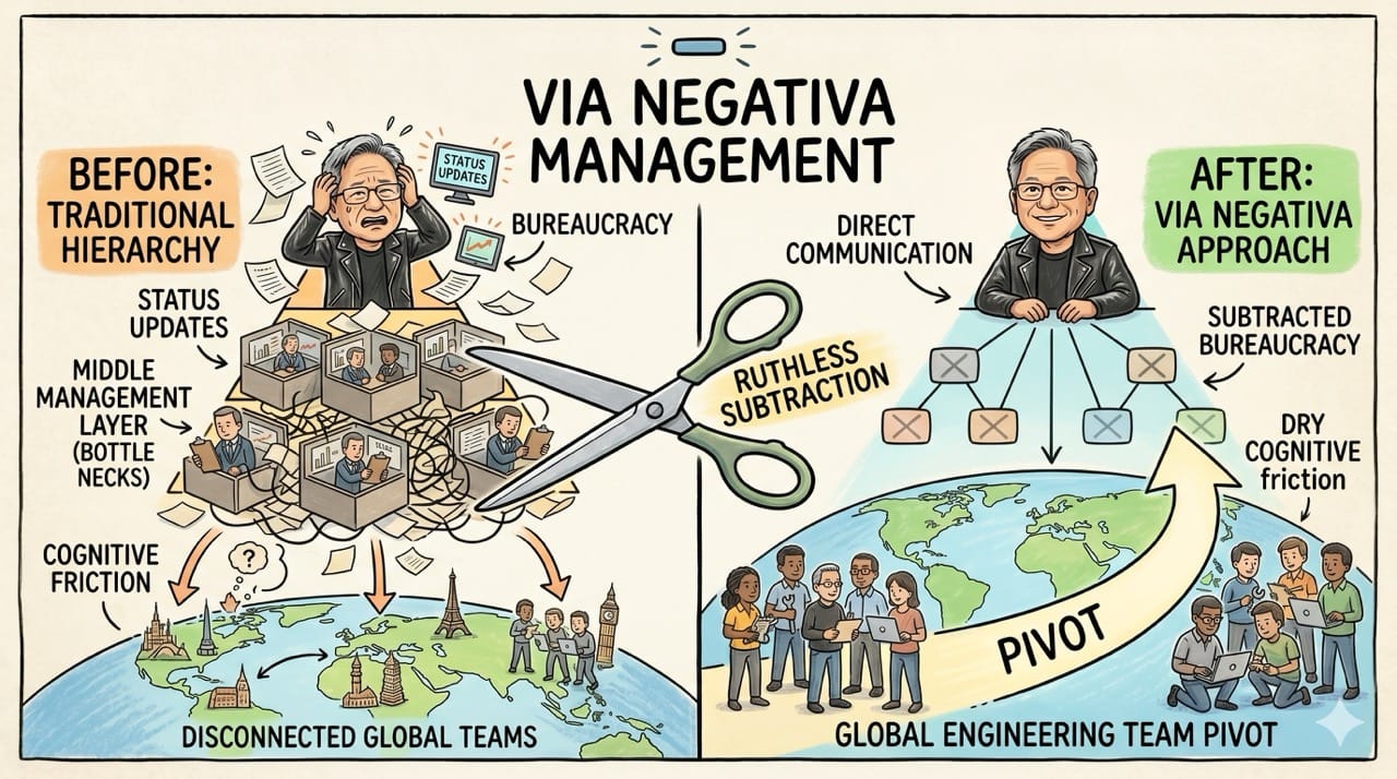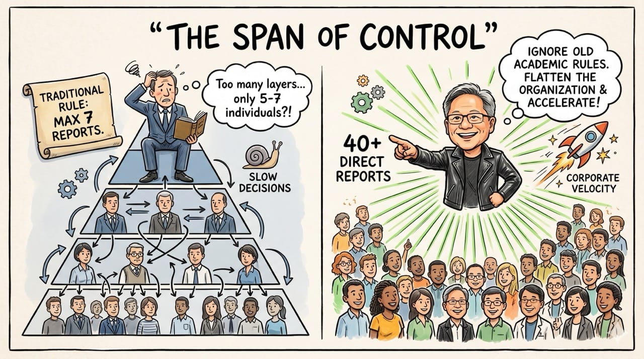 We assume a trillion dollar technology conglomerate requires massive layers of middle management to maintain operational stability. In reality, Jensen Huang runs the most valuable company on earth by completely destroying the traditional corporate hierarchy.