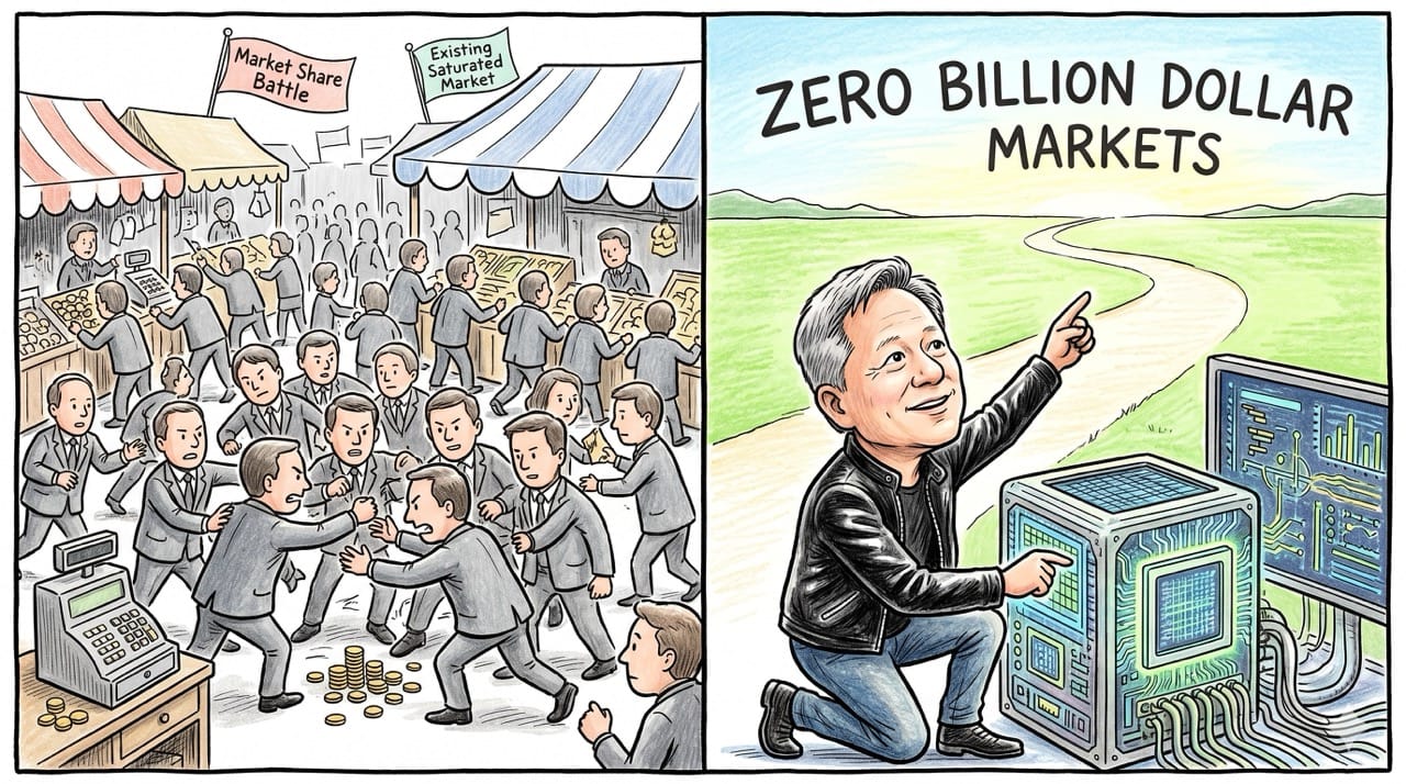 Huang operates entirely on a philosophy of chasing what he famously calls zero billion dollar markets.