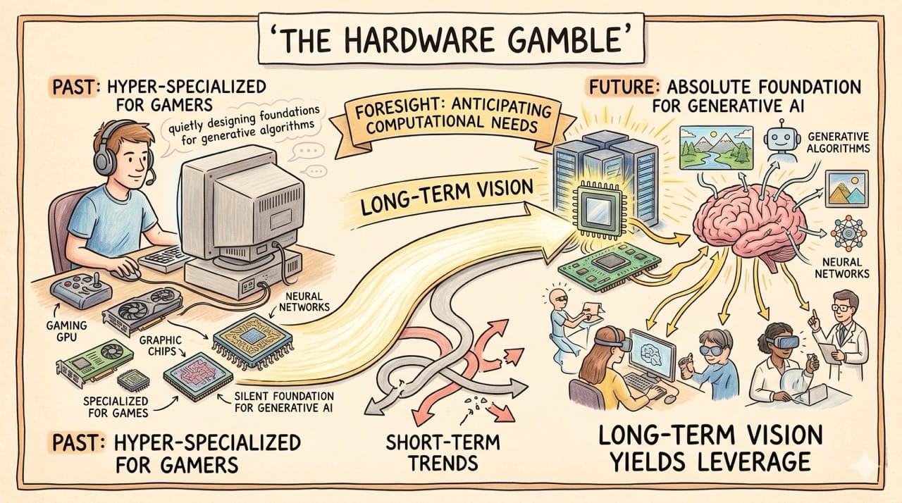 Nvidia spent decades building hyper specialized hardware for gamers while quietly designing the absolute foundation for generative algorithms.