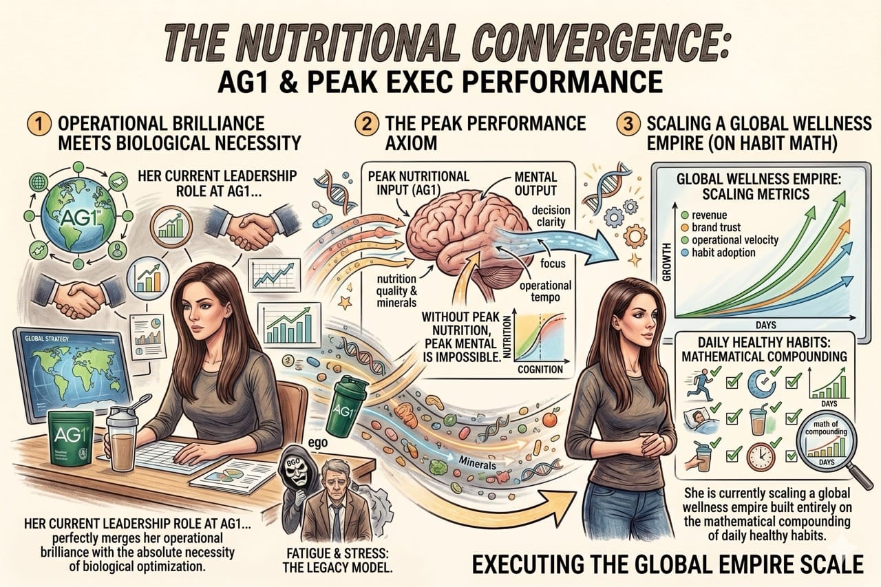 Her current leadership role at AG1 perfectly merges her operational brilliance with the absolute necessity of biological optimization.