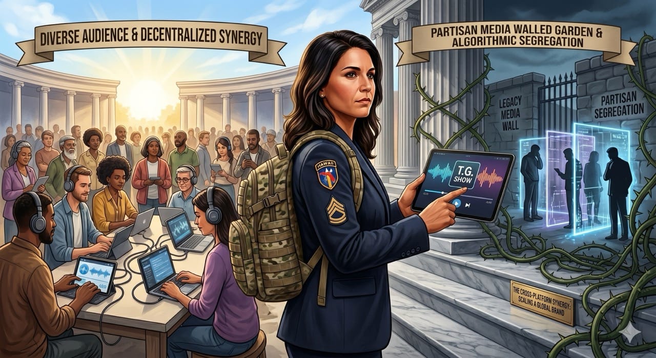 She completely bypassed traditional legacy media gatekeepers by utilizing decentralized distribution channels like long form digital podcasts.