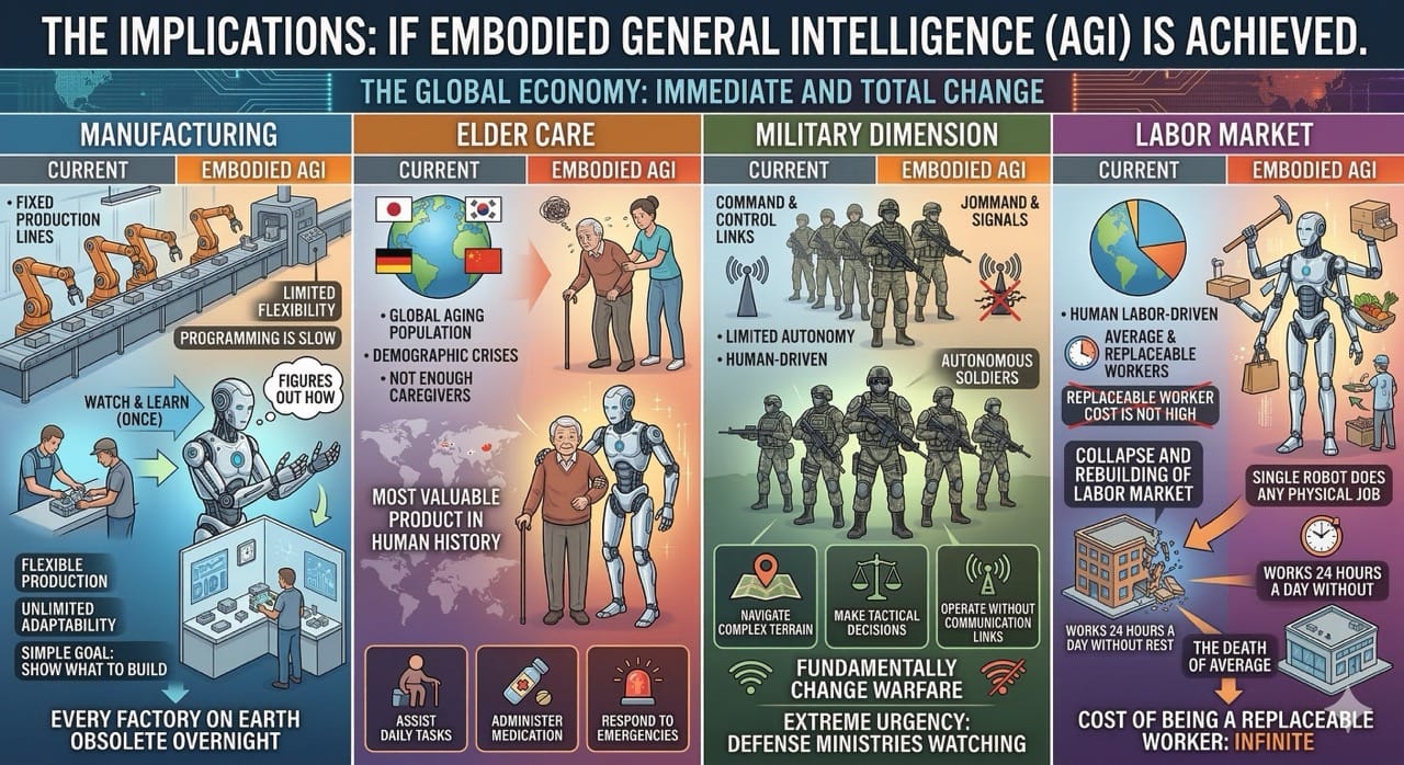 If embodied general intelligence is achieved, the effects on the global economy will be immediate and total.
