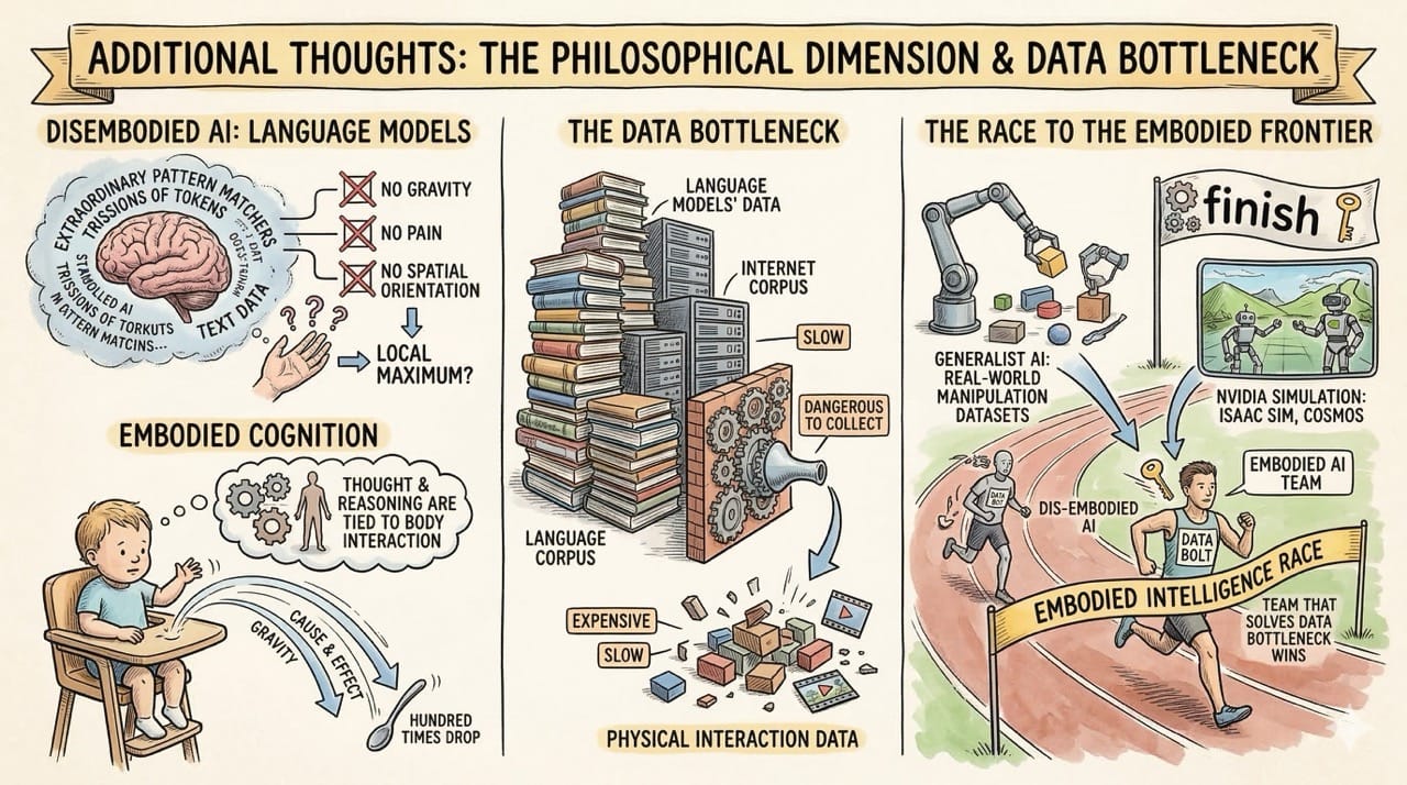 This is why companies like Generalist AI are investing heavily in building the largest real-world manipulation datasets ever assembled, and why NVIDIA's simulation platforms like Isaac Sim and Cosmos are so critical.