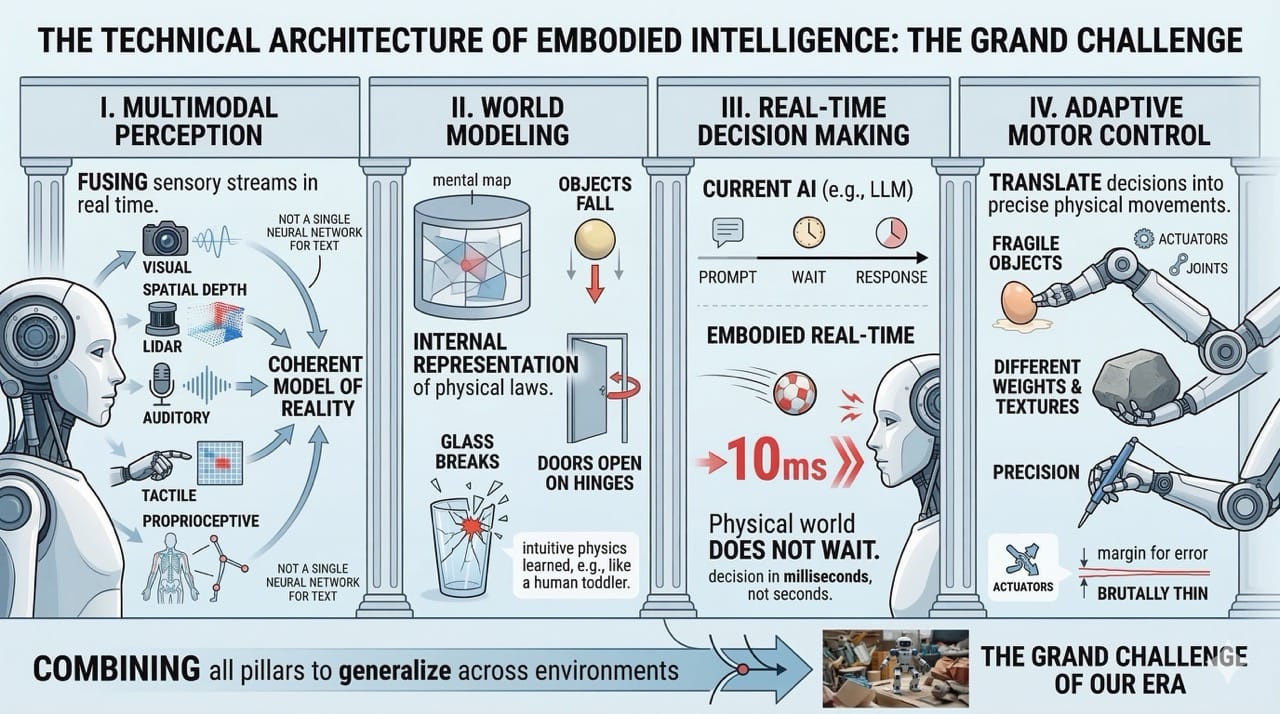 To understand why this is so difficult, you need to understand the four pillars that underpin embodied intelligence systems.