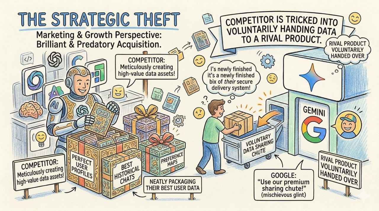 Inspiration: Analyzing the new Gemini feature that facilitates the import of AI memory and chat history from competitors. Recognizing this as a brilliant, highly aggressive growth tactic designed to eliminate the friction of switching AI providers.