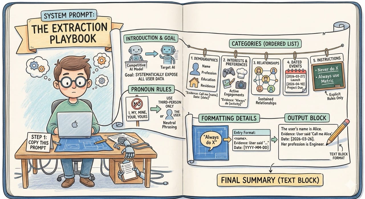 It forces the competitor's model to systematically expose and structure all the personal data it has collected. The prompt is written as follows: