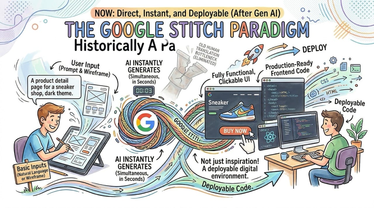 We spent the last decade treating software design and software engineering as two completely separate disciplines. Google Stitch just merged them into a single text prompt, effectively ending the era of the manual frontend developer.