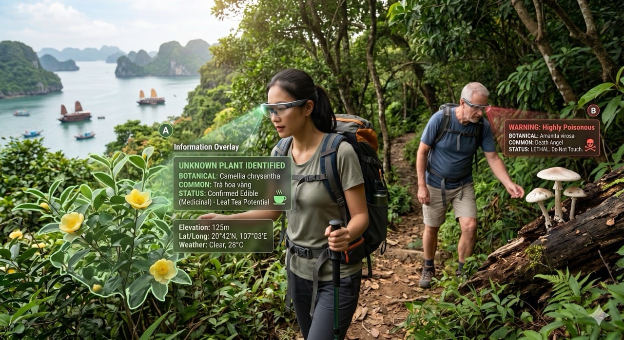A hiker can look at an unknown plant and instantly receive a digital botanical classification confirming whether it is edible or highly poisonous.