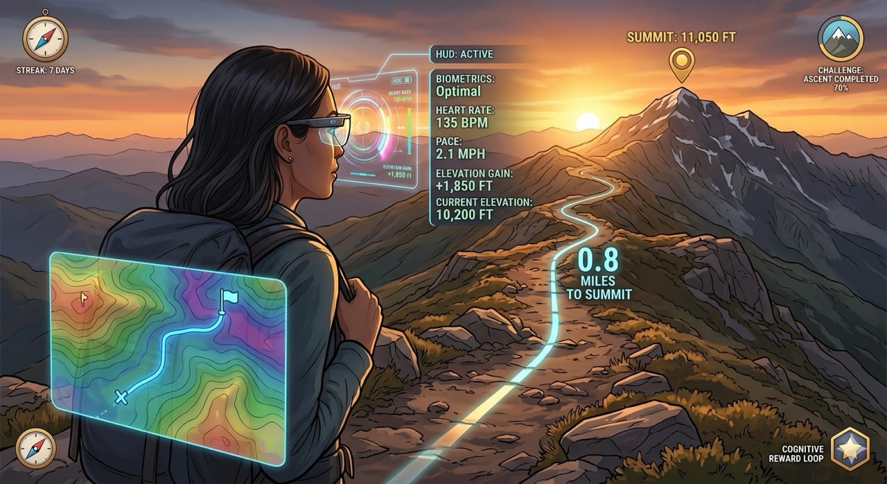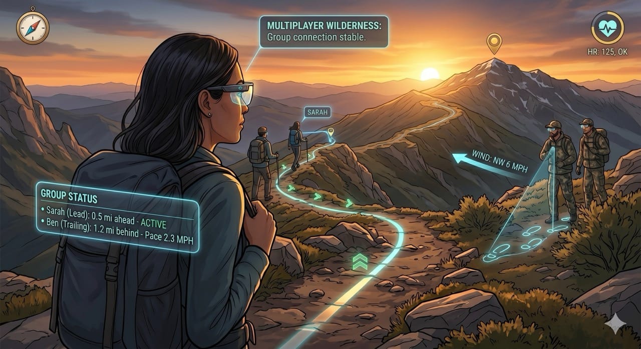 We assume augmented reality is strictly a productivity tool designed for indoor office environments. In reality, AR glasses will completely revolutionize outdoor recreation by gamifying the wilderness and turning hiking into a highly interactive, multiplayer experience.