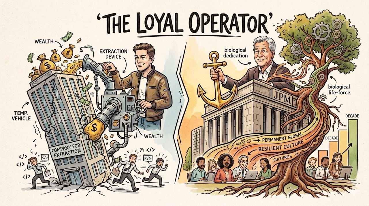 Dimon treats his massive financial institution as a permanent global utility that requires absolute biological dedication.