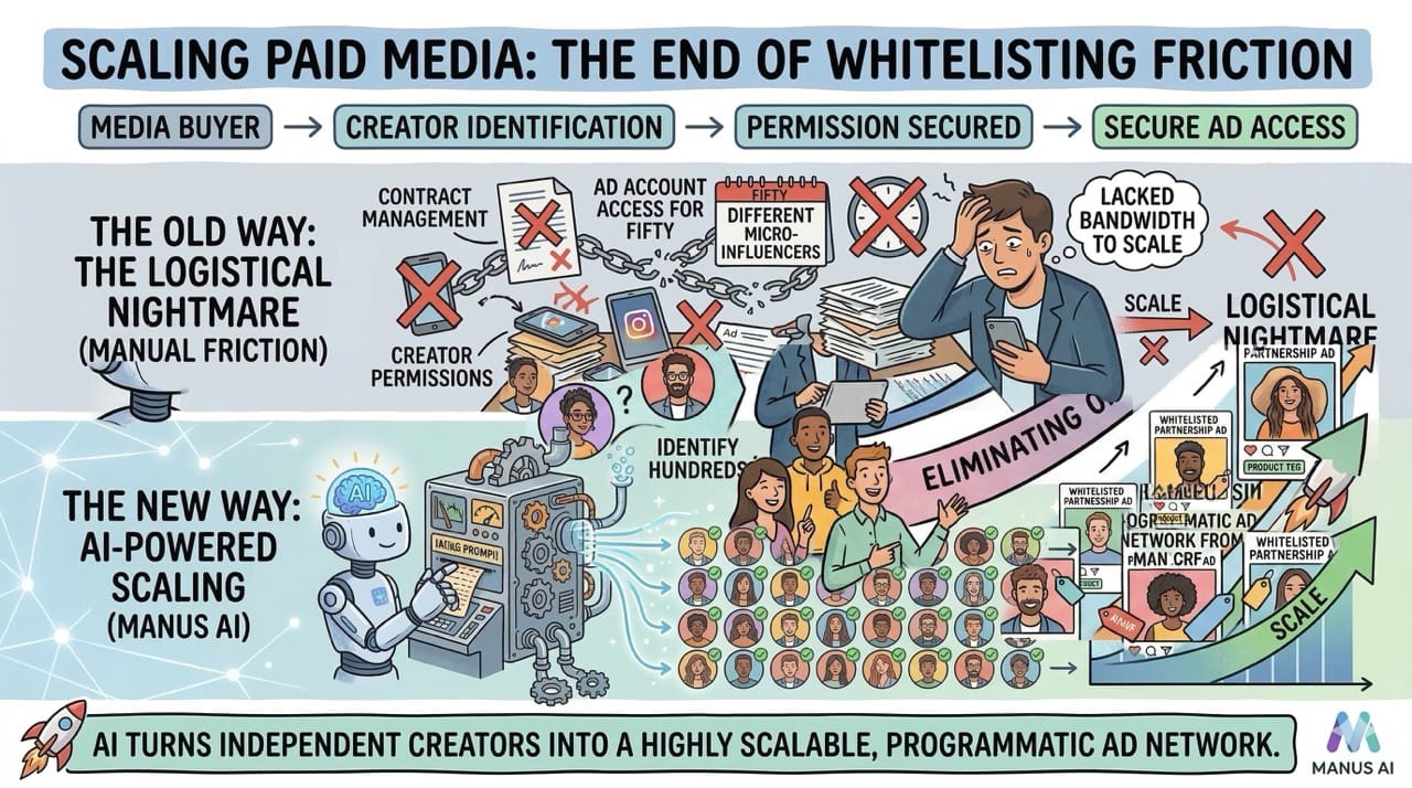 With Manus AI, media buyers can now identify hundreds of micro-influencers and automate the entire permission process.