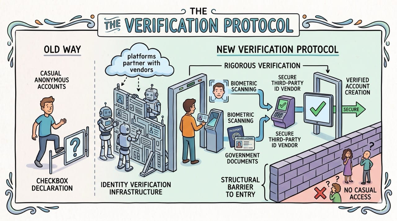 This creates a massive structural barrier to entry that completely eliminates casual or anonymous account creation.