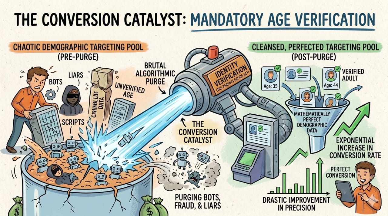 We assume government legislation regarding child safety will severely restrict the digital advertising economy. In reality, mandatory age verification completely purges the algorithmic data pool of useless bot traffic and drastically increases baseline conversion rates.