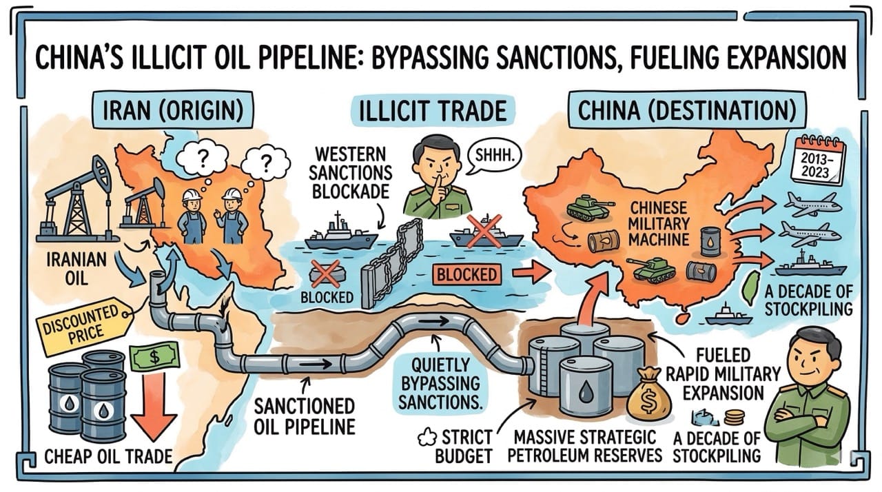 This illicit energy trade allowed Beijing to build massive strategic petroleum reserves on a strict budget.