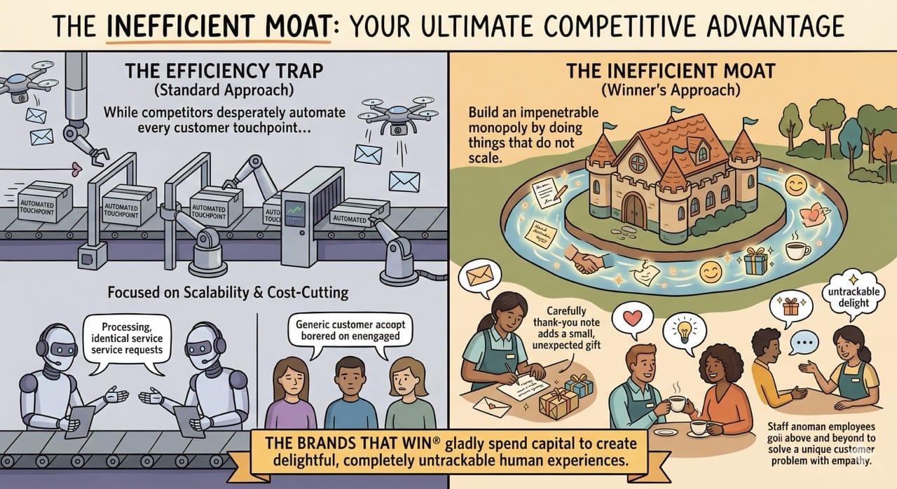 While your competitors desperately try to automate every single customer touchpoint, you will build an impenetrable monopoly by doing things that do not scale.