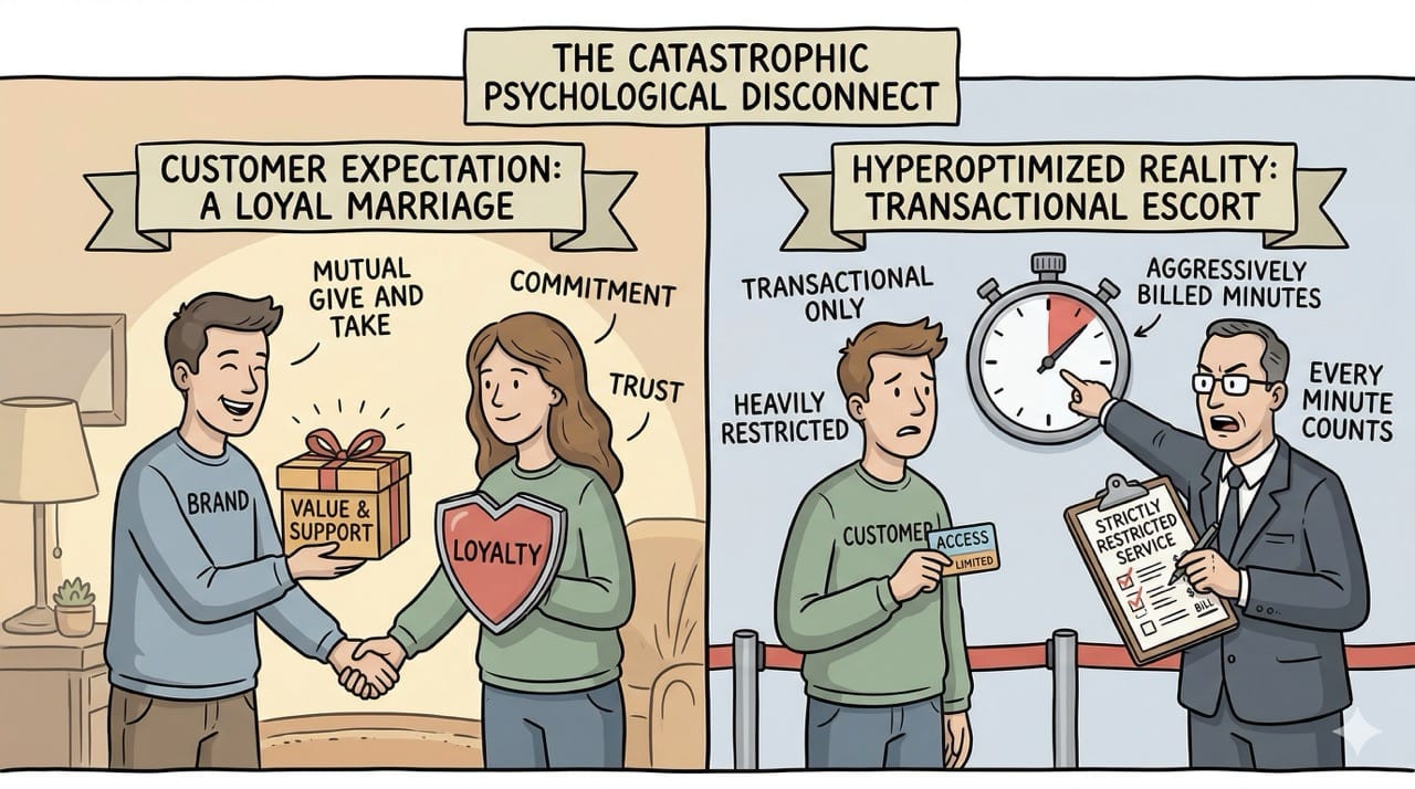 Instead, hyperoptimized businesses treat their customers like transactional escorts where every single minute is aggressively billed and heavily restricted.