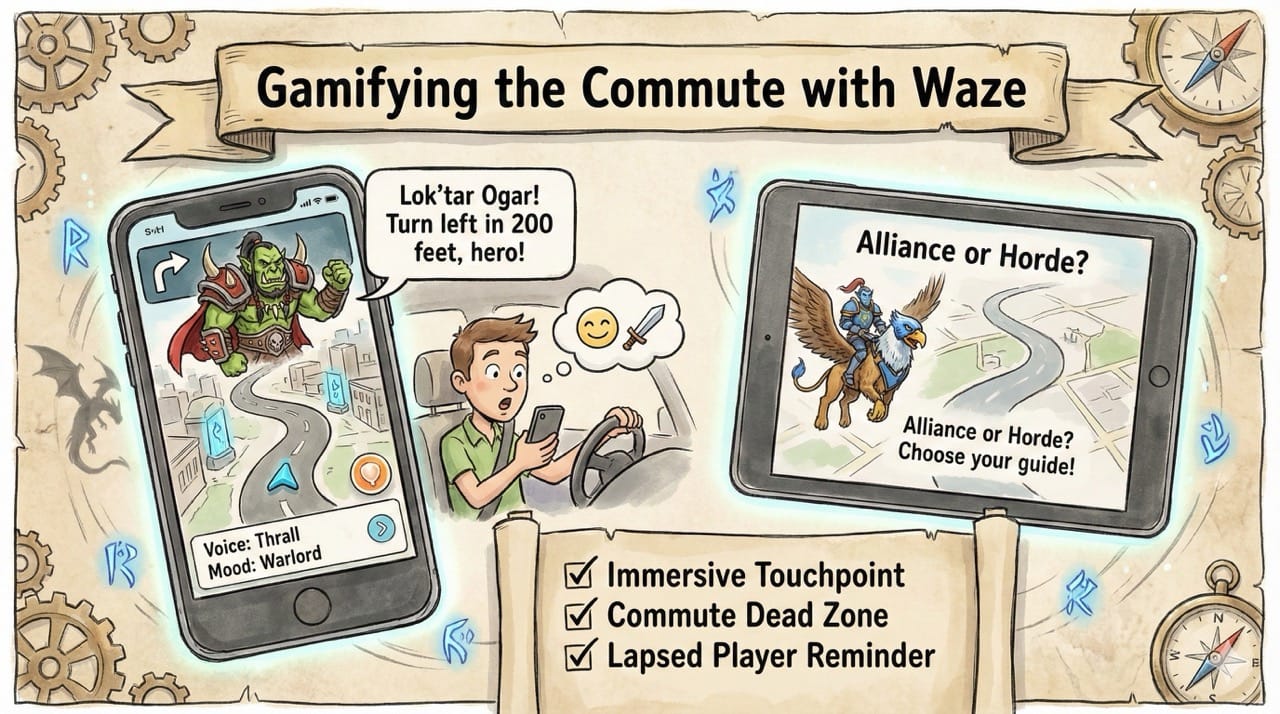 The marketing team integrated WoW characters into the navigation app to voice directions for everyday commuters.
