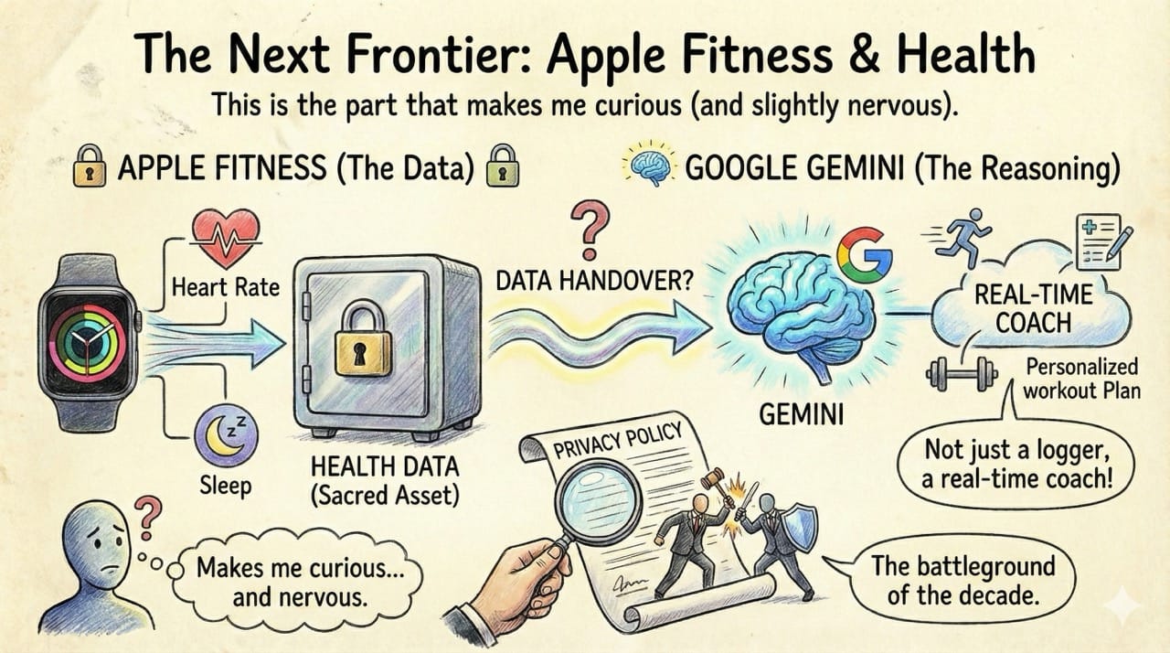 Apple Fitness has the data (heart rate, sleep). Google has the reasoning (Gemini).