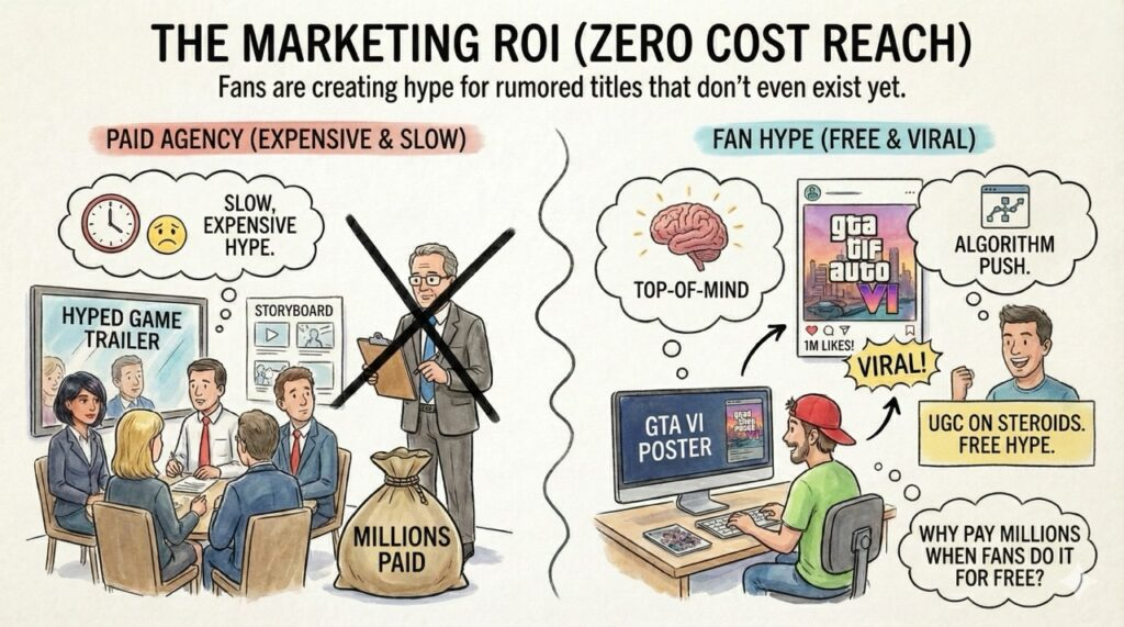 The result? The brand stays top-of-mind. The algorithm pushes the IP for free. It is User Generated Content (UGC) on steroids.