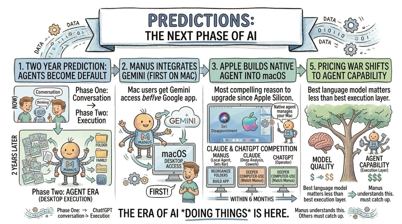 Apple will build its own version of this directly into macOS. Siri has been a disappointment for years. A native AI agent that manages your Mac the way Manus does would be the most compelling reason to upgrade since Apple Silicon.
