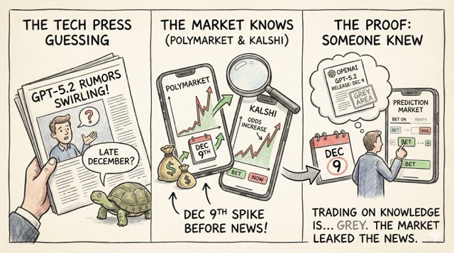 Inspiration: Coffeezilla’s breakdown of how prediction markets are basically unregulated casinos, and watching the GPT-5.2 release date leak on Polymarket before the press release.