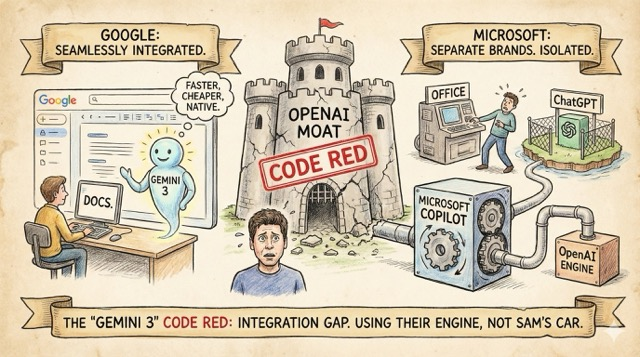 Reports indicate a “Code Red” at OpenAI. Their moat—being the smartest model in the room—is gone.