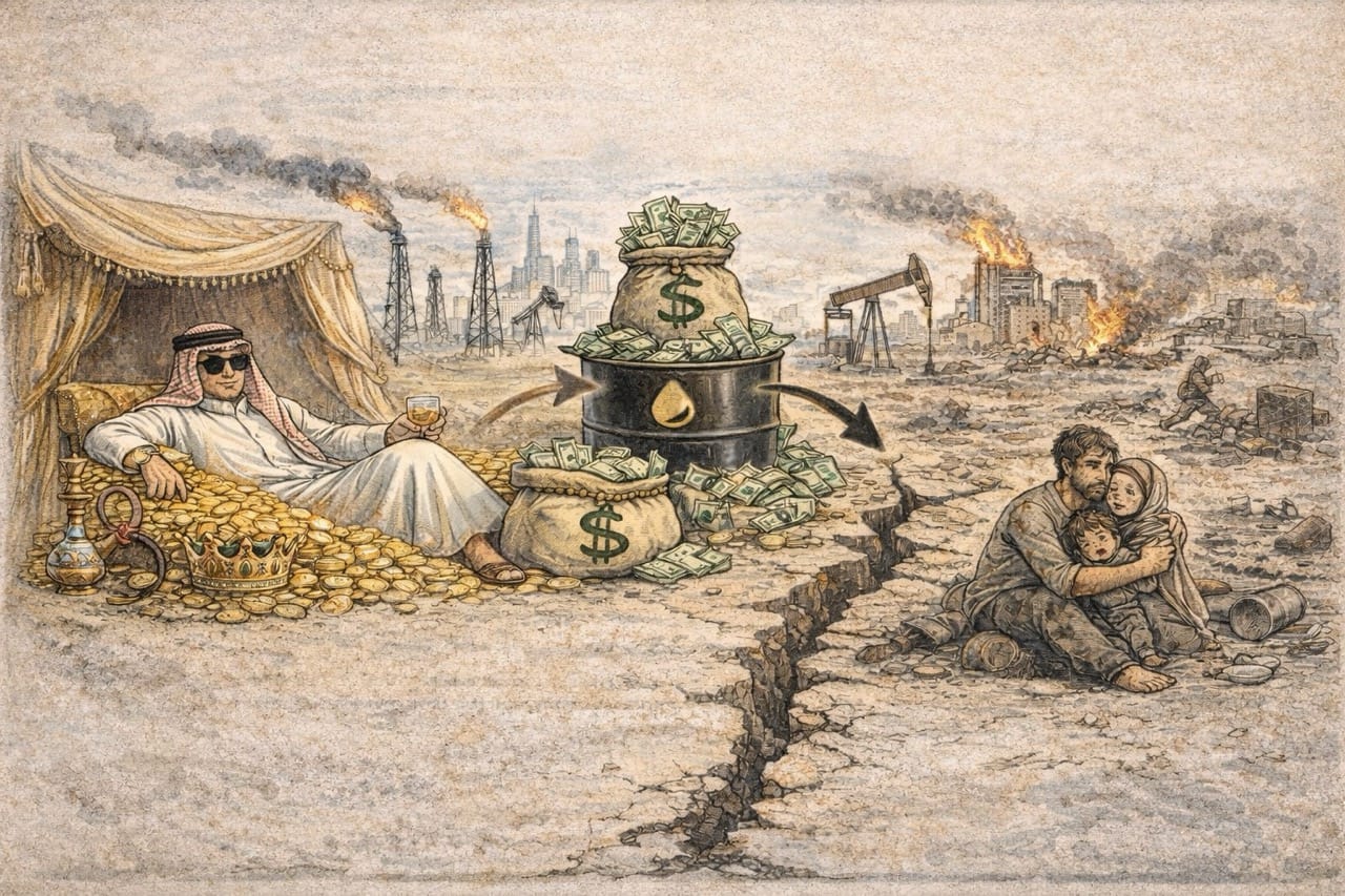 The Result: The "Resource Curse." Because the government doesn't need tax revenue from its people (it has oil money), it doesn't need to listen to them. Democracy rarely flourishes where the ground is richer than the citizens. They are rich, but they are fragile. If the oil price drops, the society collapses because there is no underlying engine of productivity.
