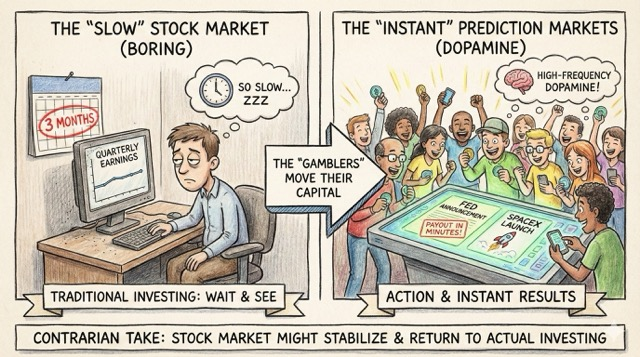 My Contrarian Take: This might actually stabilize the stock market. If the “gamblers” move their volatile, dopamine-seeking capital to prediction markets, the stock market might return to being a place for… actual investing.