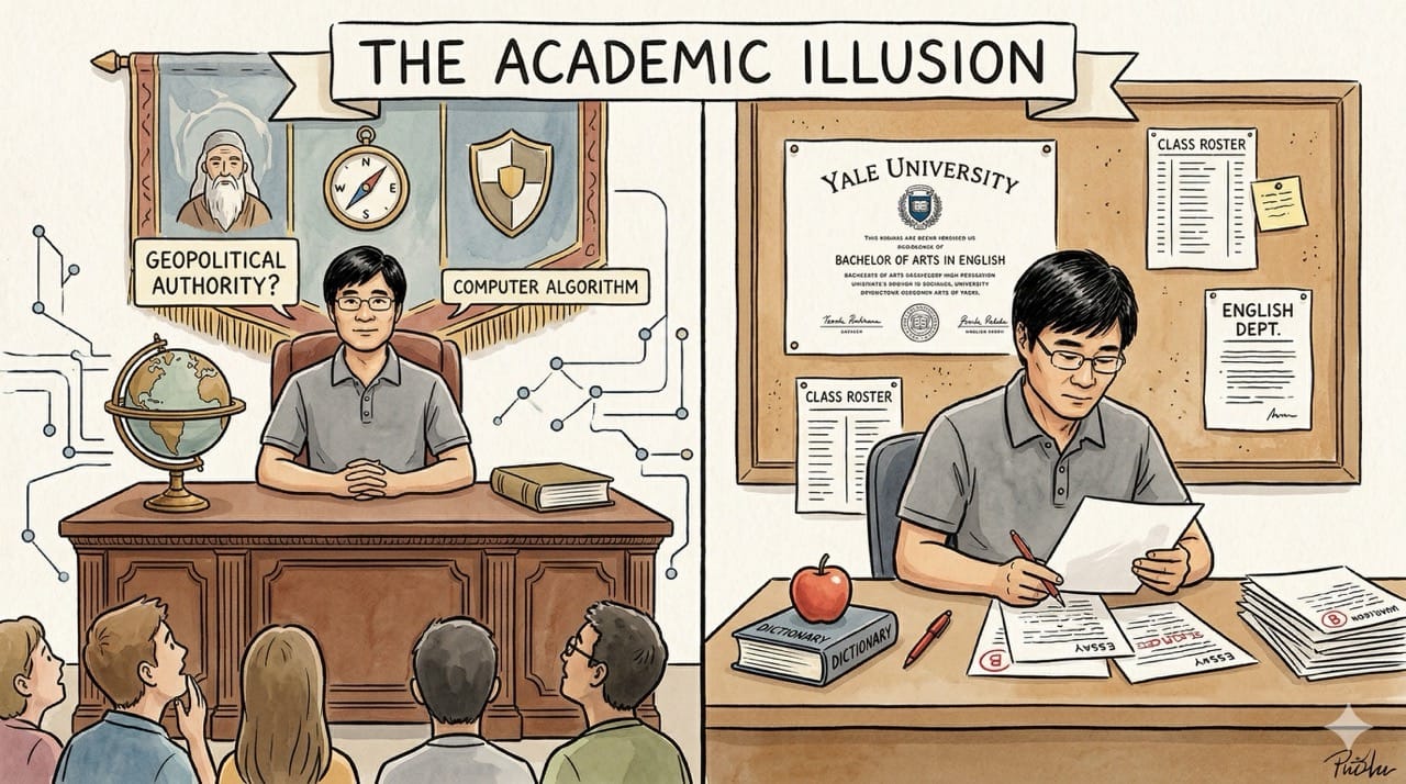 He is a high school educator who leverages a Yale undergraduate degree in English to project absolute academic authority.