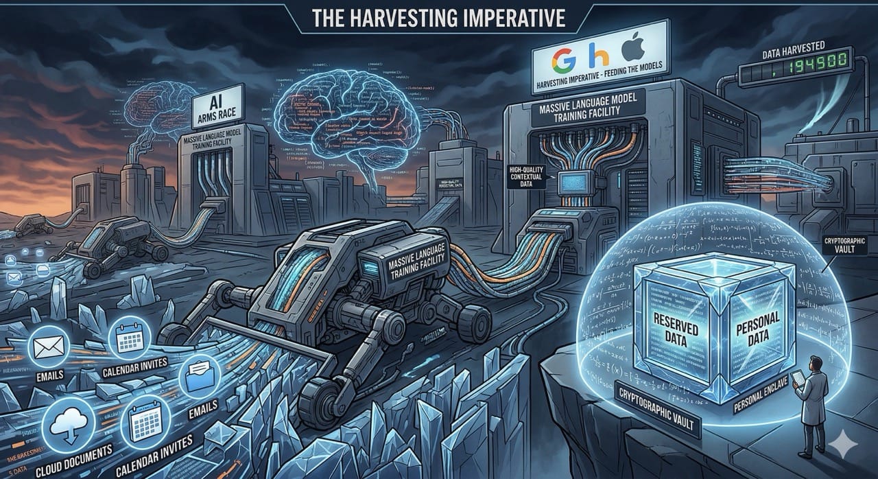 Tech monopolies are actively crawling communications to feed their language models. The only defense is a cryptographically sealed digital ecosystem.