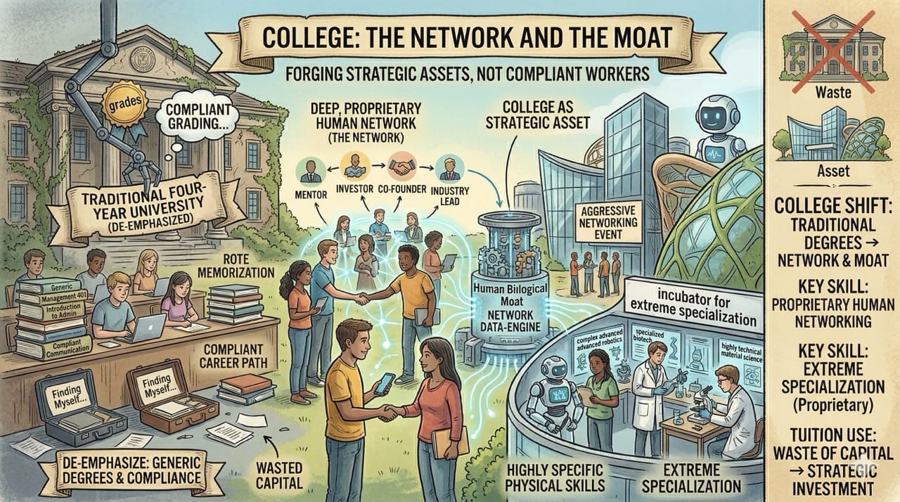 If a student is not actively building a deep, proprietary human network or a highly specific physical skill, the tuition is a complete waste of capital.