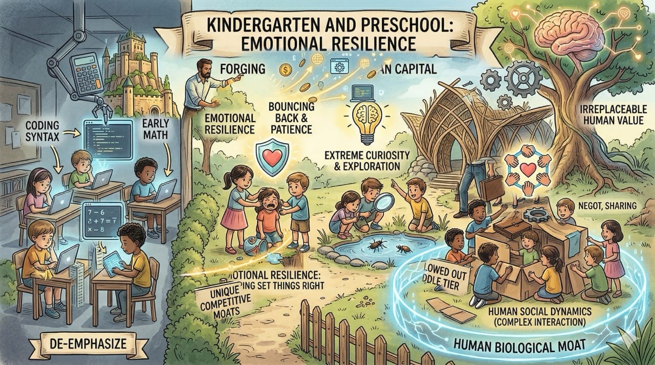 The earliest years of education must focus entirely on the biological traits that machines cannot replicate.