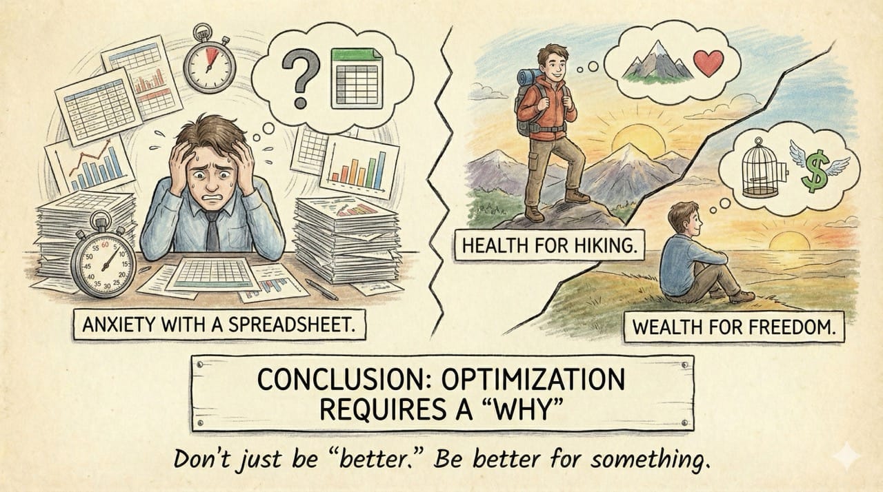 We treat life like a spreadsheet to be solved. But optimization without a "Why" is just anxiety with a methodology. Are you optimizing your life, or just avoiding living it?