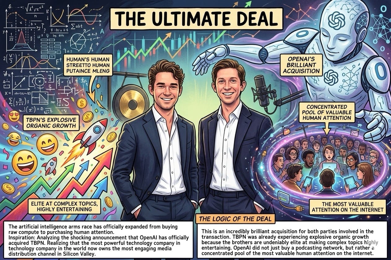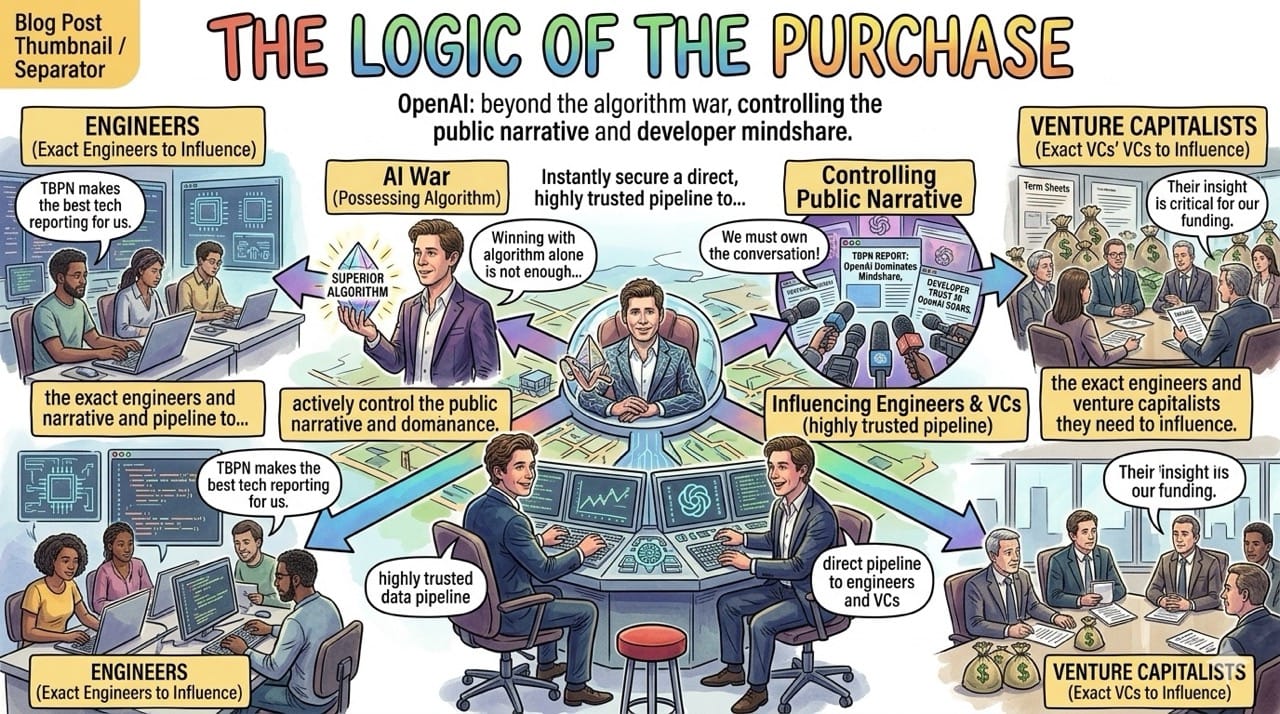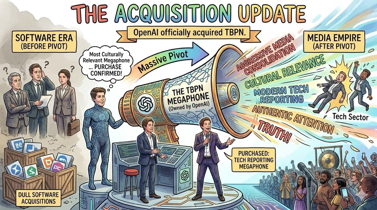 Inspiration: Analyzing the shocking announcement that OpenAI has officially acquired TBPN. Realizing that one the most powerful technology company in the world now owns the most engaging media distribution channel in Silicon Valley.