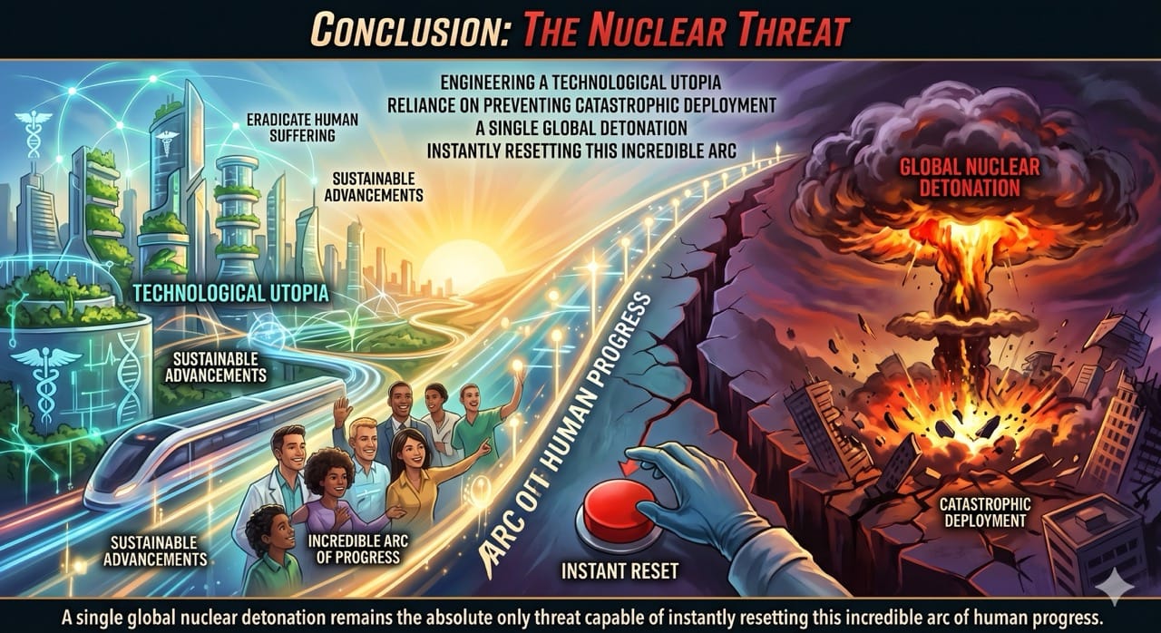 However, this entire beautiful trajectory relies entirely on preventing the catastrophic deployment of our most destructive weapons.