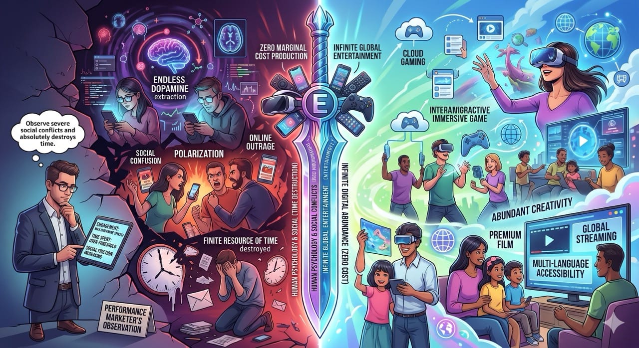 As a performance marketer, I constantly observe how this endless dopamine extraction creates severe social conflicts and absolutely destroys our finite resource of time.